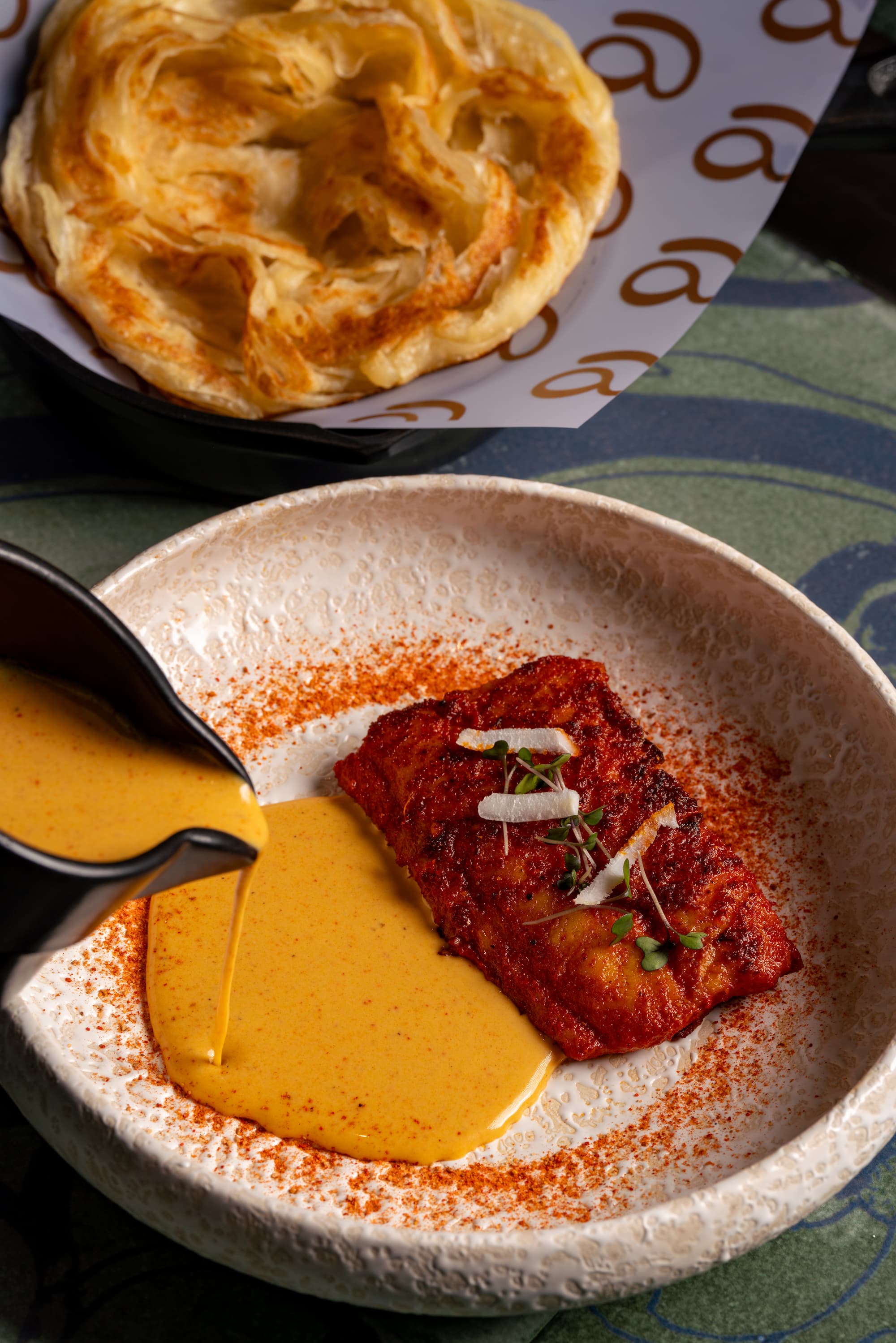 Aidu transports diners to a South Indian haven, where every meal is an opportunity to savor and create memories. By honoring tradition, Aidu embraces the practice of eating with five fingers, fostering an intimate connection with the earth and generations past. This tactile experience celebrates ancestral wisdom, with every morsel of food narrating a tale from the past.